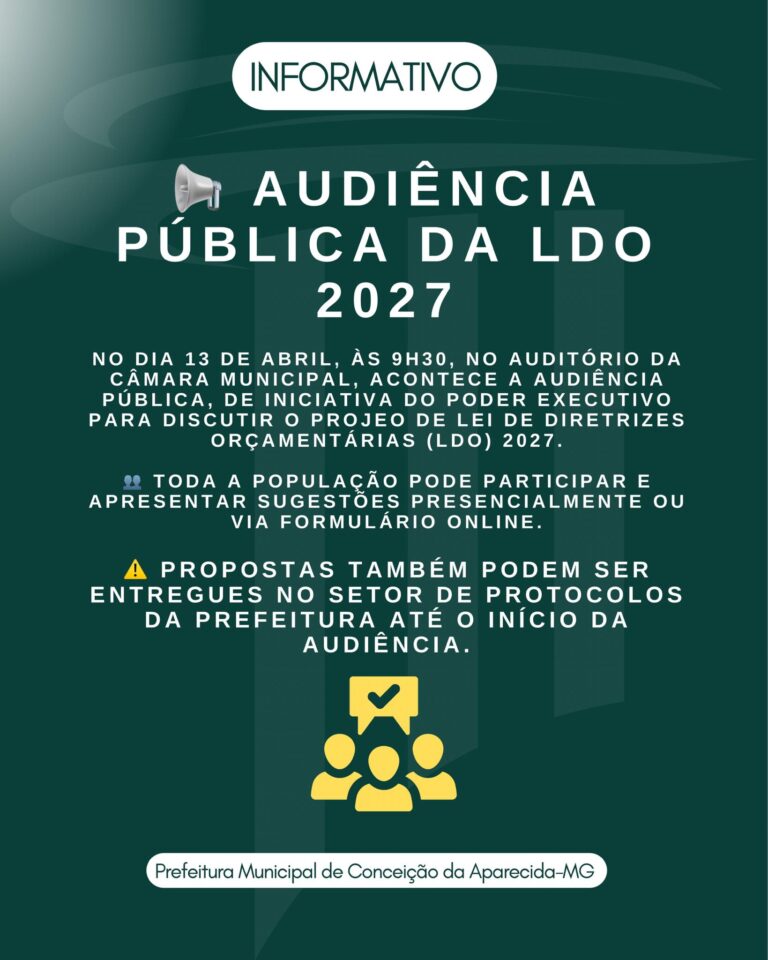 👉🏻 Será realizada no dia 13 de abril de 2026 a partir das 09h30, na Câmara Municipal de Conceição da ...