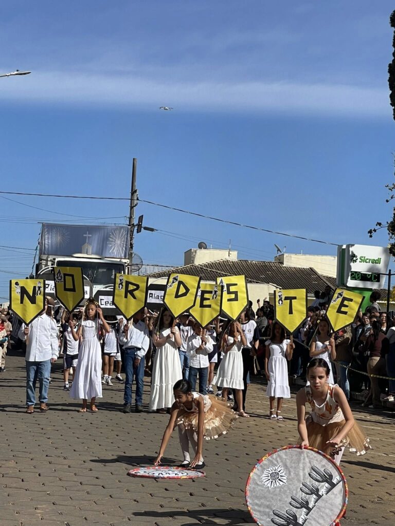 A Prefeitura Municipal e a Secretaria Municipal de Educação agradecem, com imensa gratidão, a todas as diretoras das escolas, aos profissionais da educação, estudantes, Secretarias Municipais, à Guarda Municipal, à Polícia Militar, aos familiares, voluntários e a todos que, de forma direta ou indireta, contribuíram para a organização e realização do momento cívico e do desfile.
