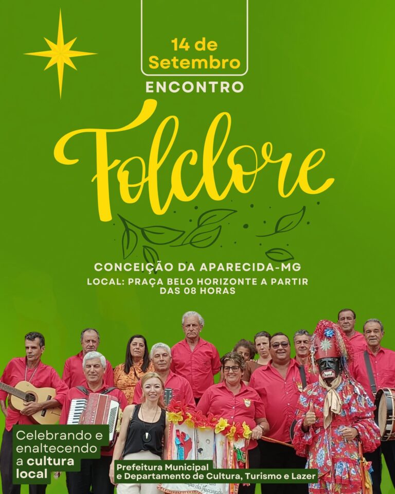 A Prefeitura Municipal, por meio do Departamento de Cultura, Turismo e Lazer, convida toda a população e região para o Encontro de Folclore, que acontecerá no dia 14 de setembro, na Praça Belo Horizonte, a partir das 8h da manhã.