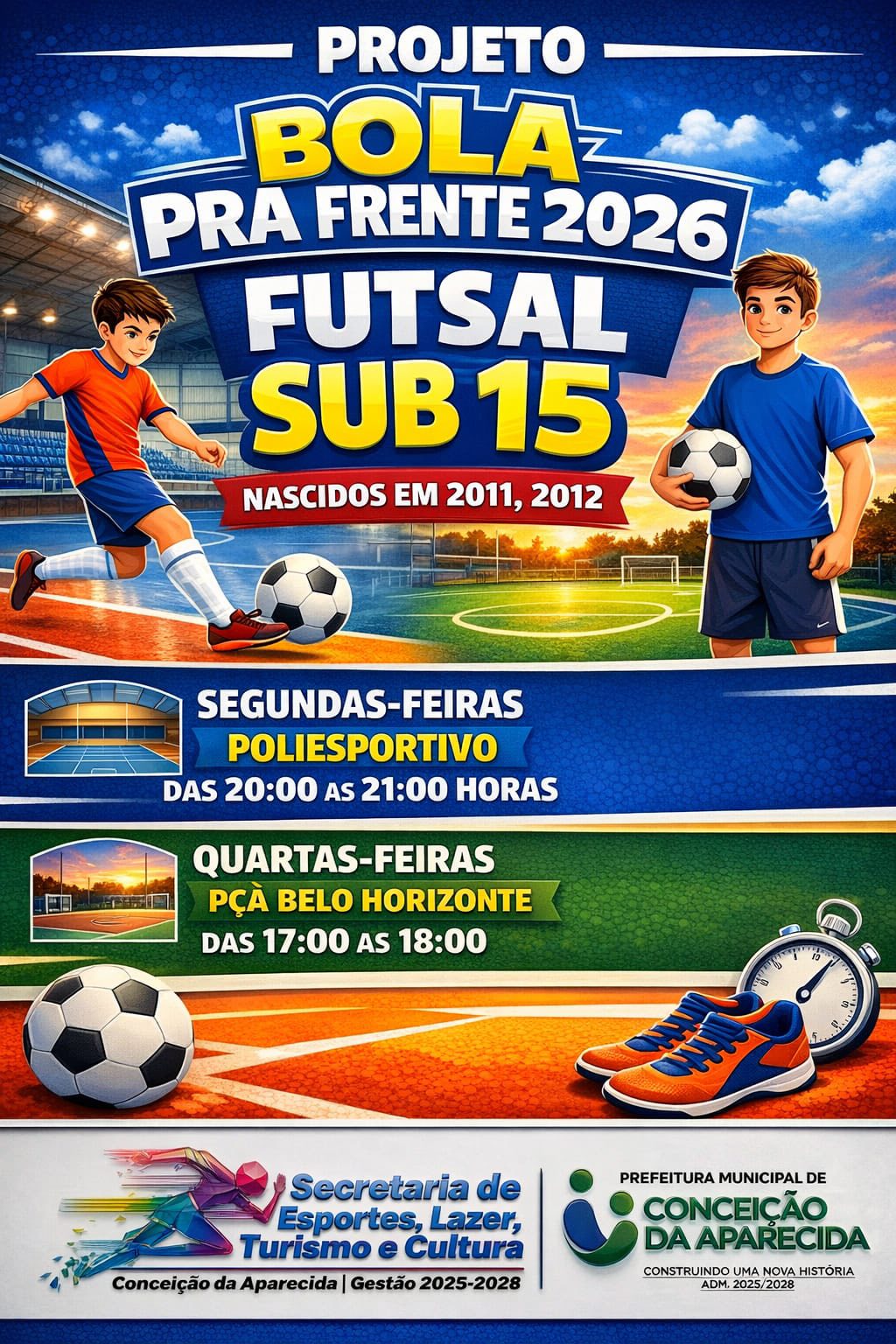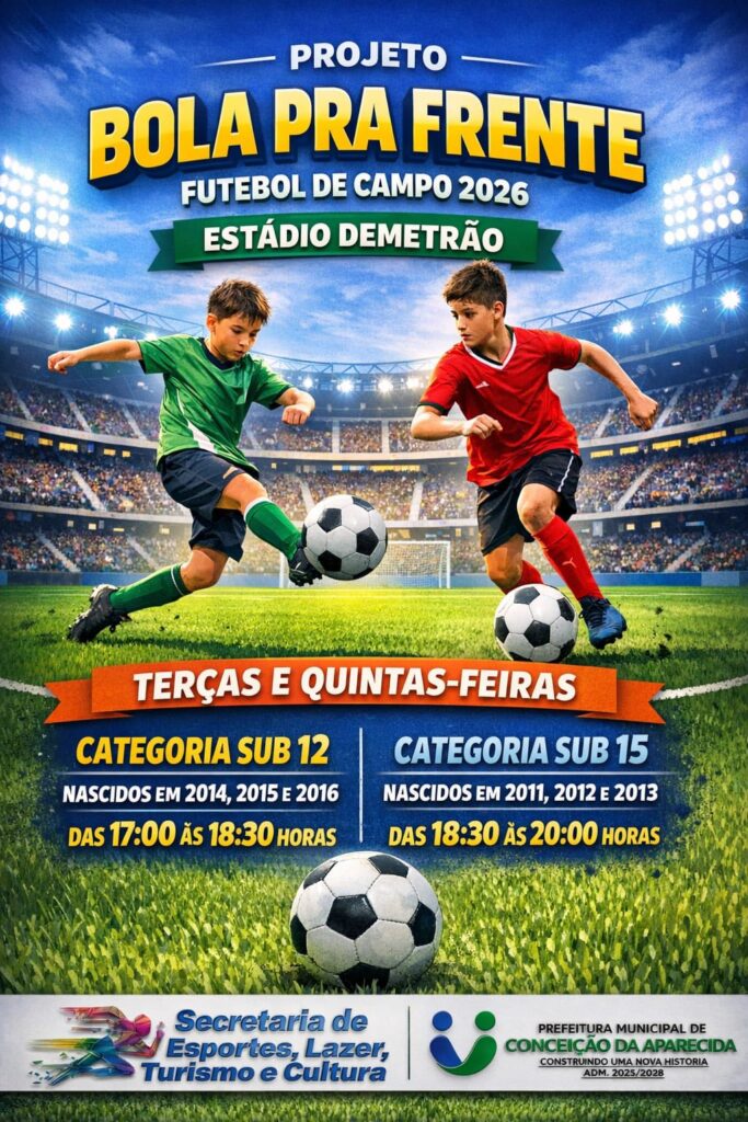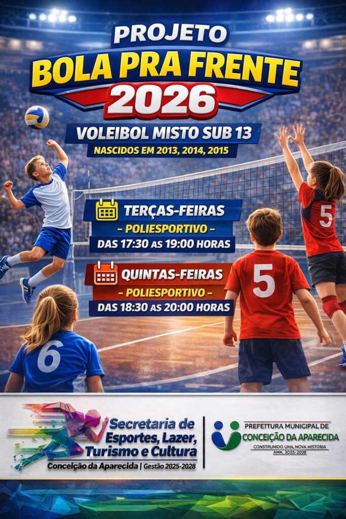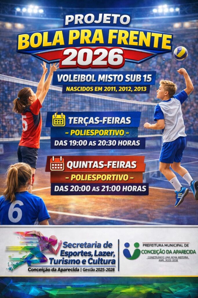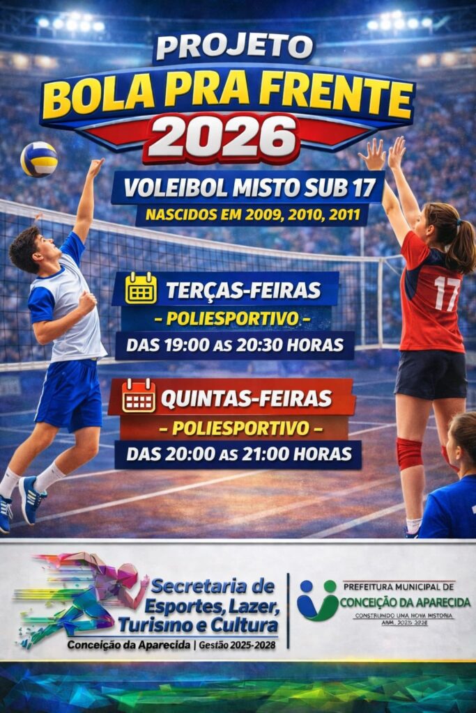 A Prefeitura Municipal de Conceição da Aparecida, e Secretaria de Esporte, anuncia o retorno do Projeto Bola Pra Frente 2026, que volta com tudo no dia 19 de fevereiro de 2026. ⚽️🏐🏀