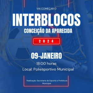 Venha celebrar conosco o início do INTERBLOCOS 2023! A abertura oficial acontecerá hoje às 18 horas no poliesportivo municipal. … Leia Mais »
